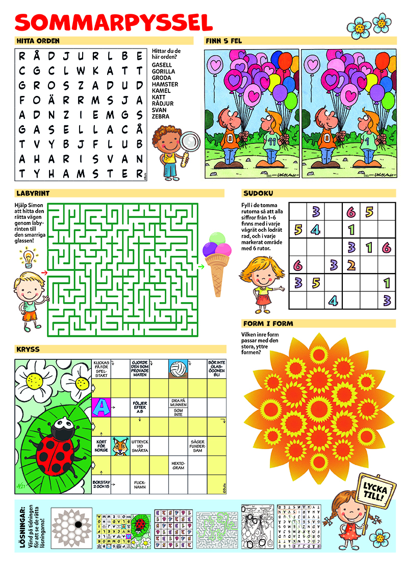 Helsida med blandat sommarmaterial för barn. Priset gäller för publicering vid ett tillfälle och i en publikation.