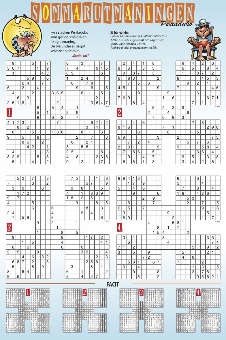 Tabloid/A4 En klurig sommarutmaning med pentaduko. Priset gäller för publicering vid ett tillfälle, i en publikation.